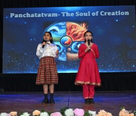 PANCHTATTVAM denotes the five elements that form the universe and life – Earth, Water, Fire, Air, and Space. The event began with an engaging story of an alien arriving on Earth to understand our planet. Through this narrative, children explained how life is made of these five elements, both within our bodies and in the world around us. The theme beautifully conveyed the harmony between nature and human meaningfully.