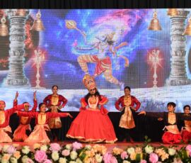 DIVYAKATHAYAIN was a grand journey through mythology where Narad Muni guided students across tales of devotion, valor, sacrifice, and dharma. Each performance — from the birth of Ganesha, the battle of Raktabij, Krishna’s playful Leelas, Samudra Manthan, Narsimha Avatar, Eklavya’s sacrifice, to the eternal saga of the Ramayan — became a living tapestry of culture and values.
