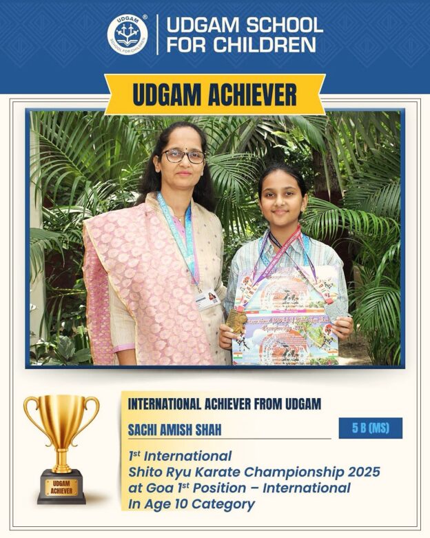 Sachi Amish Shah, 5B (MS), wins 1st position at Shito Ryu Karate Championship 2025 held in Goa in U-10 category.