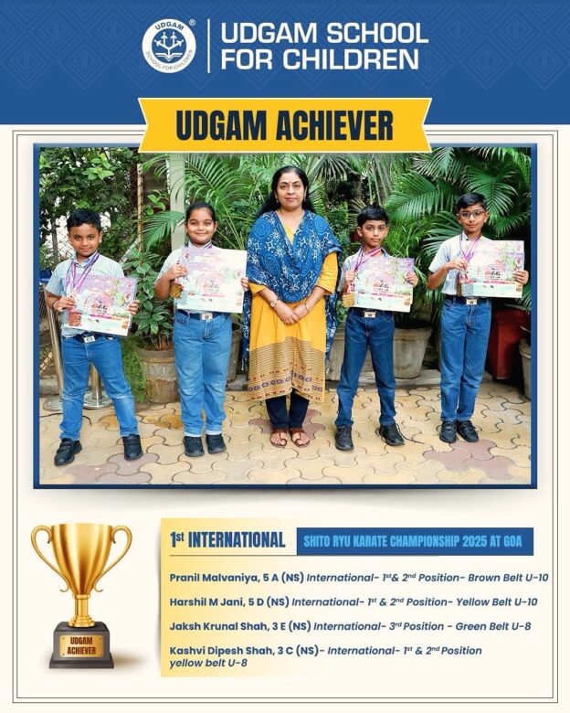 Reyansh A Patel, 7B (MS), wins 1st position at Shito Ryu Karate Championship 2025 held in Goa in U-11 category.