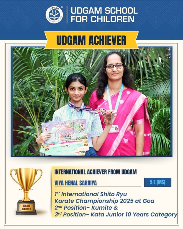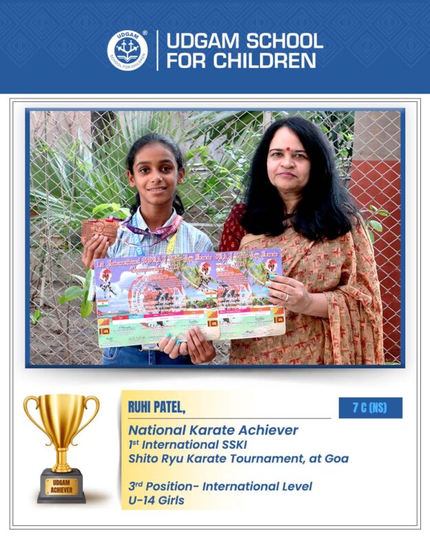 Ruhi Patel, 7C (NS), wins 1st and 3rd positions in Shito Ryu Karate Championship 2025 held in Goa in U-14 category.